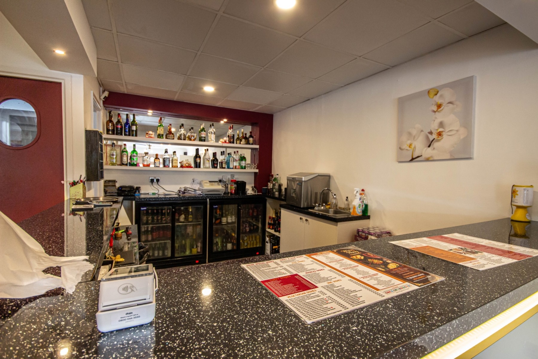 Downstairs consists of entrance hallway leading to the seating area with a bar section , further seating can be found in the conservatory, to the rear is the large commercial kitchen, plenty of storage , two customer toilets, a cloakroom and a shower room for staff. Stairs lead to the upstairs flat, which comprises 2 bedrooms & 1 reception room, or 3 bedrooms , and bathroom.